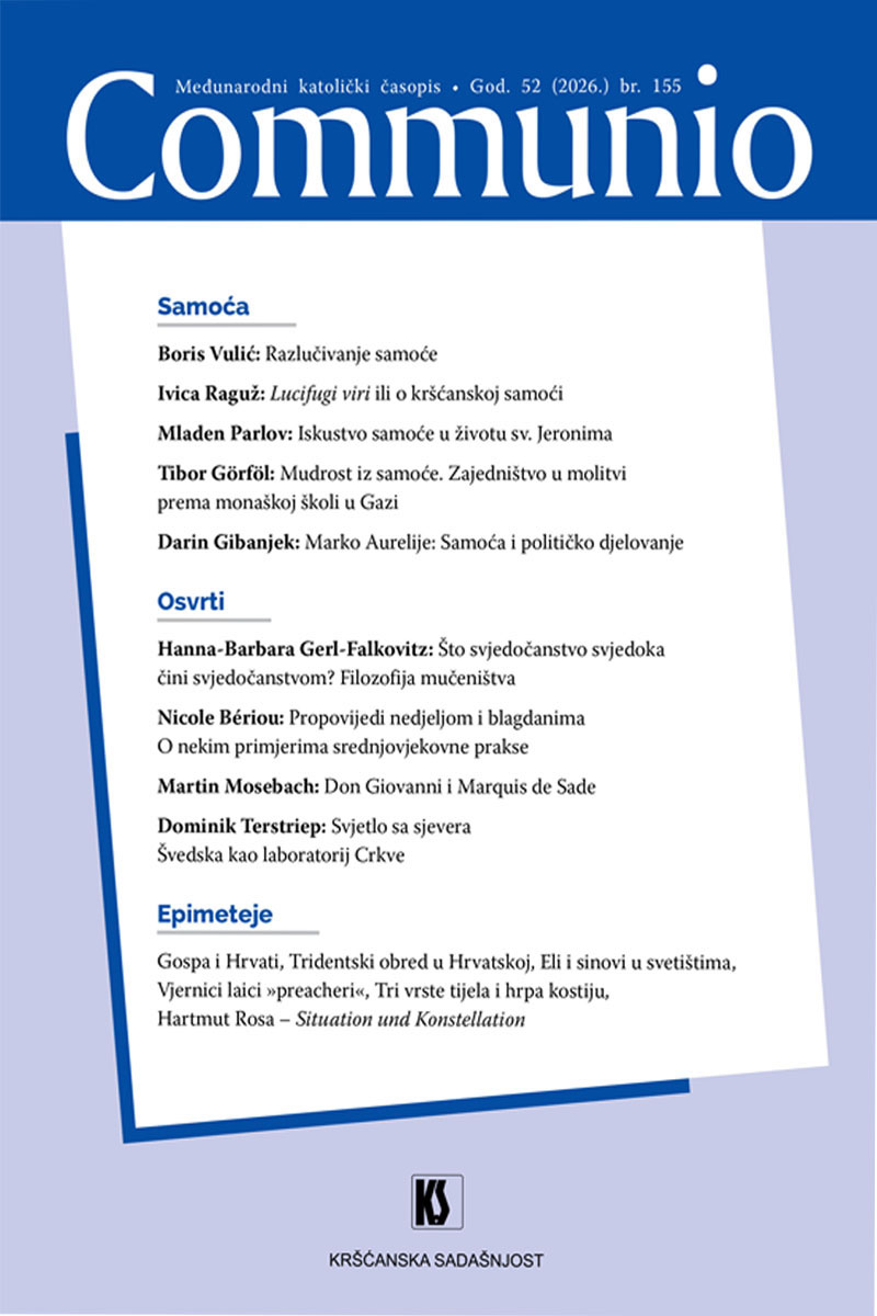 Prvi ovogodišnji broj Communija posvećen je temi „Samoća“. Promišljanje započinje Boris Vulić člankom „Razlučivanje samoće“. Potom slijedi članak Ivice Raguža „Lucifugi viri ili o kršćanskoj samoći“. Nakon njega dolazi članak...
