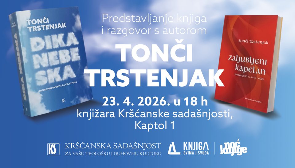 U knjižaru Kršćanske sadašnjosti na zagrebačkom Kaptolu u četvrtak 23. travnja u 18 sati stiže pater isusovac, ujedno pisac, Tonči Trstenjak. Na susretu s autorom uz ovogodišnju Noć knjige predstavit će se njegova nova knjiga kratkih priča Dika nebeska. I druge pripovijesti za vele i male, kao i njoj prethodna zbirka kratkih priča Zaljubljeni kapelan. Pripovijesti za vele i male, objavljena u vrijeme pandemije koronavirusa. Uz samog autora, patera Trstenjaka, o knjizi će govoriti književnica i slikarica Sonja Tomić, a događaj će moderirati voditeljica marketinga Kršćanske sadašnjosti, Tihana Pšenko Miloš.
